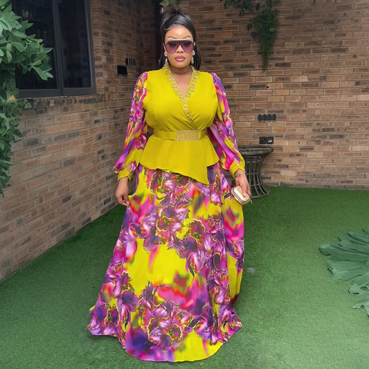 Ensemble deux pièces pour femme grande taille, robe à imprimé irrégulier africain