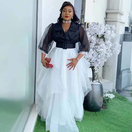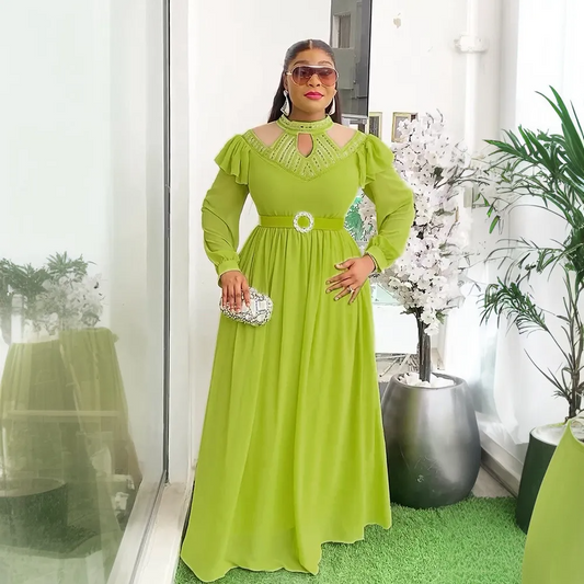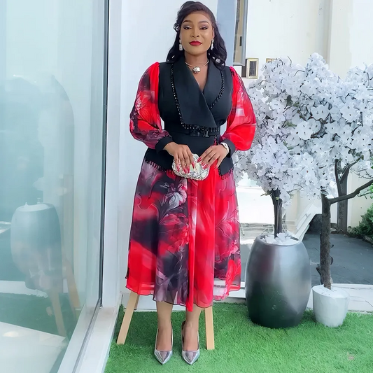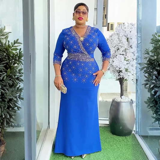 Robe de soirée/fête perlée à col en V, style africain, grande taille, chic et élégante, pour femme
