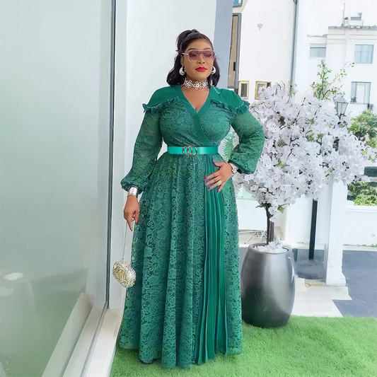 Robe longue élégante en dentelle patchwork pour femme grande taille